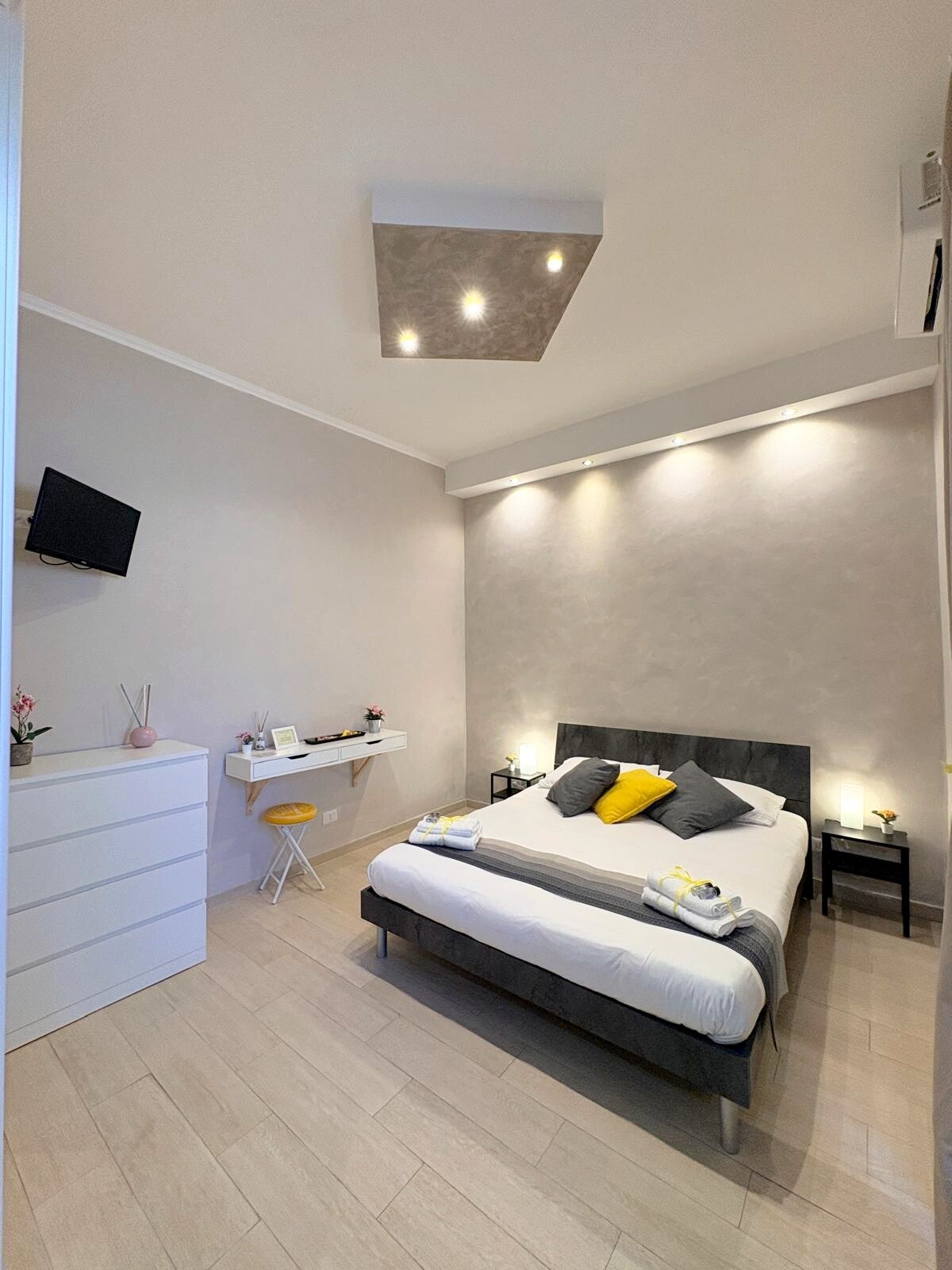 Le nostre camere sono composte da un letto matrimoniale ed hanno tutte un bagno privato, una tv a schermo piatto ,riscaldamento e condizionatore. Su richiesta è possibile aggiungere una culla senza nessun prezzo aggiuntivo.